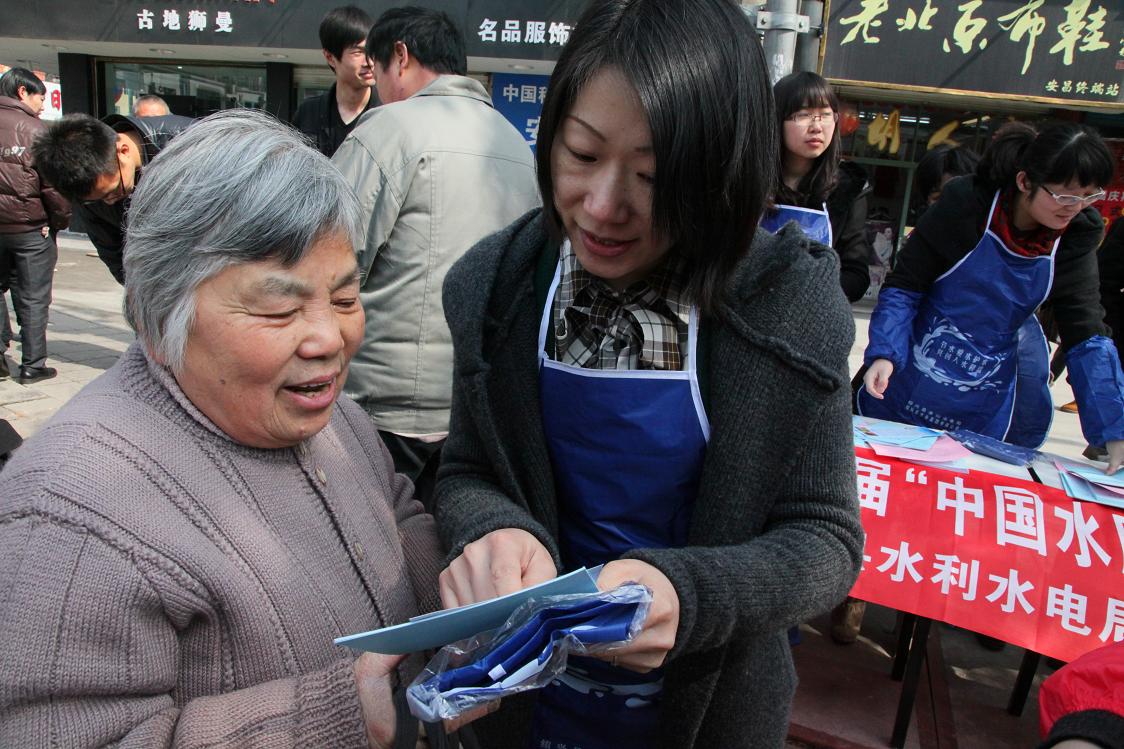 3月21日、22日上午,集团公司和县水利水电局20多名志愿者走上安昌、齐贤街头,向居民宣传节水护水、水法知识,树立节水护水宣传标语牌,使宣传活动真正进村入户、深入人心。从3月22日起,利用“农民信箱”平台,开设“水周专辑”,每日通过短信向广大农民朋友宣传节水知识和水法律法规,呼吁大家保护珍贵的水资源。