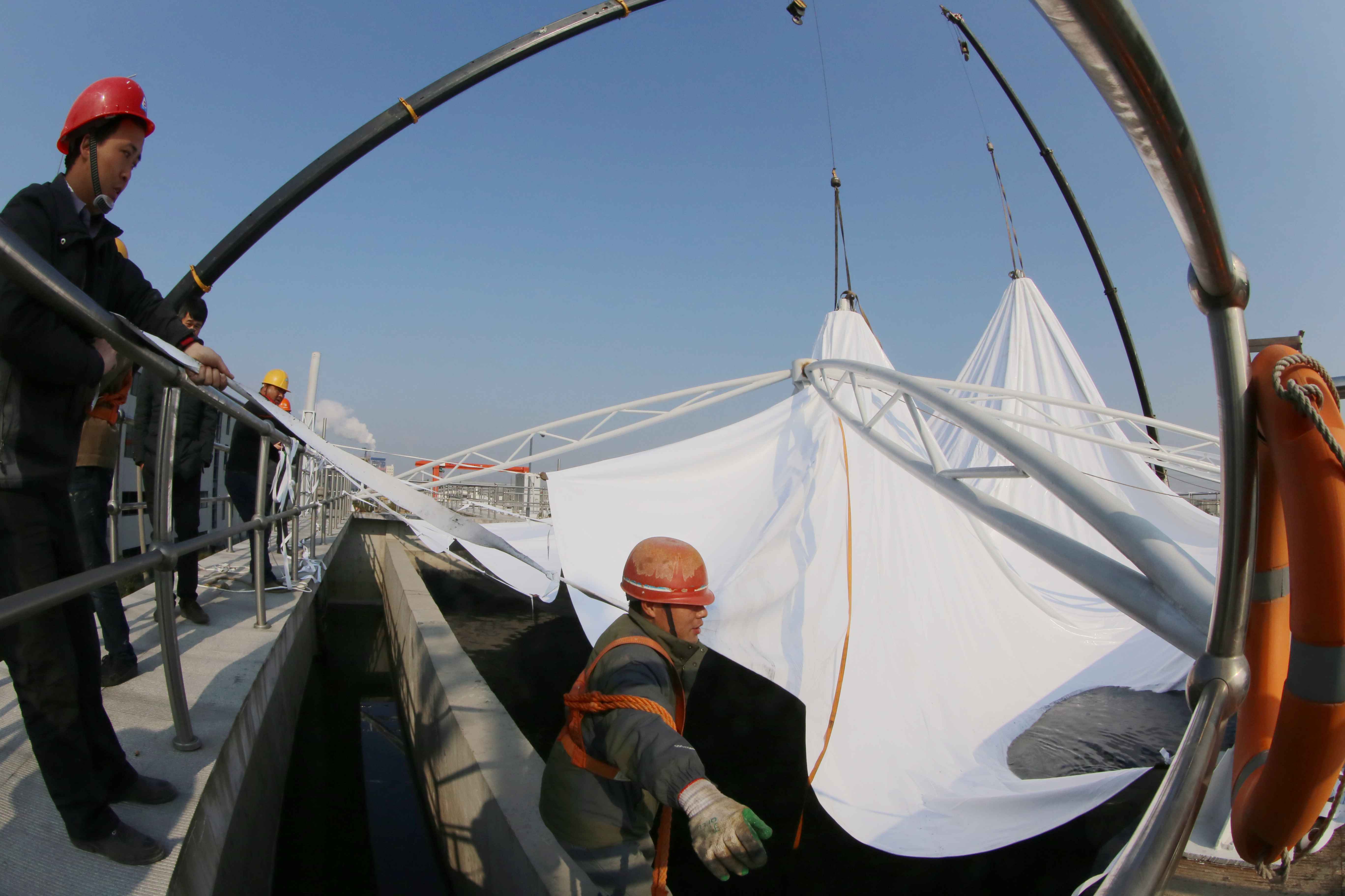 经过1个多月的紧张施工,污水集中预处理系统稳流池除臭工程于1月初完成设备安装调试,进行除臭设备试运行。
